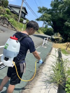 弊社では、地域社会への貢献活動の一環として、毎年恒例となっている「通勤・通学路の除草作業」を実施いたしました。